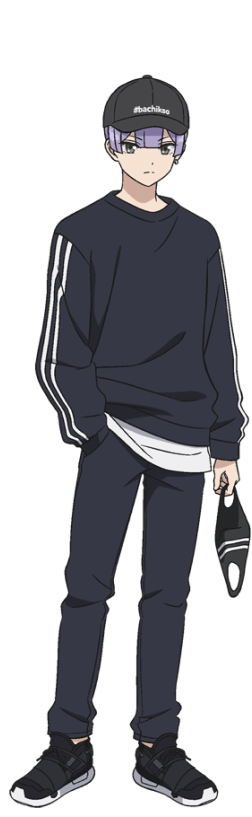 Gaku is a short but very fit guy. He stands out with lilac colored hair and dark green grayish eyes and is usually seen wearing black clothes, especially notable with his cap that spells "#fucking life" and black cloth face mask.
